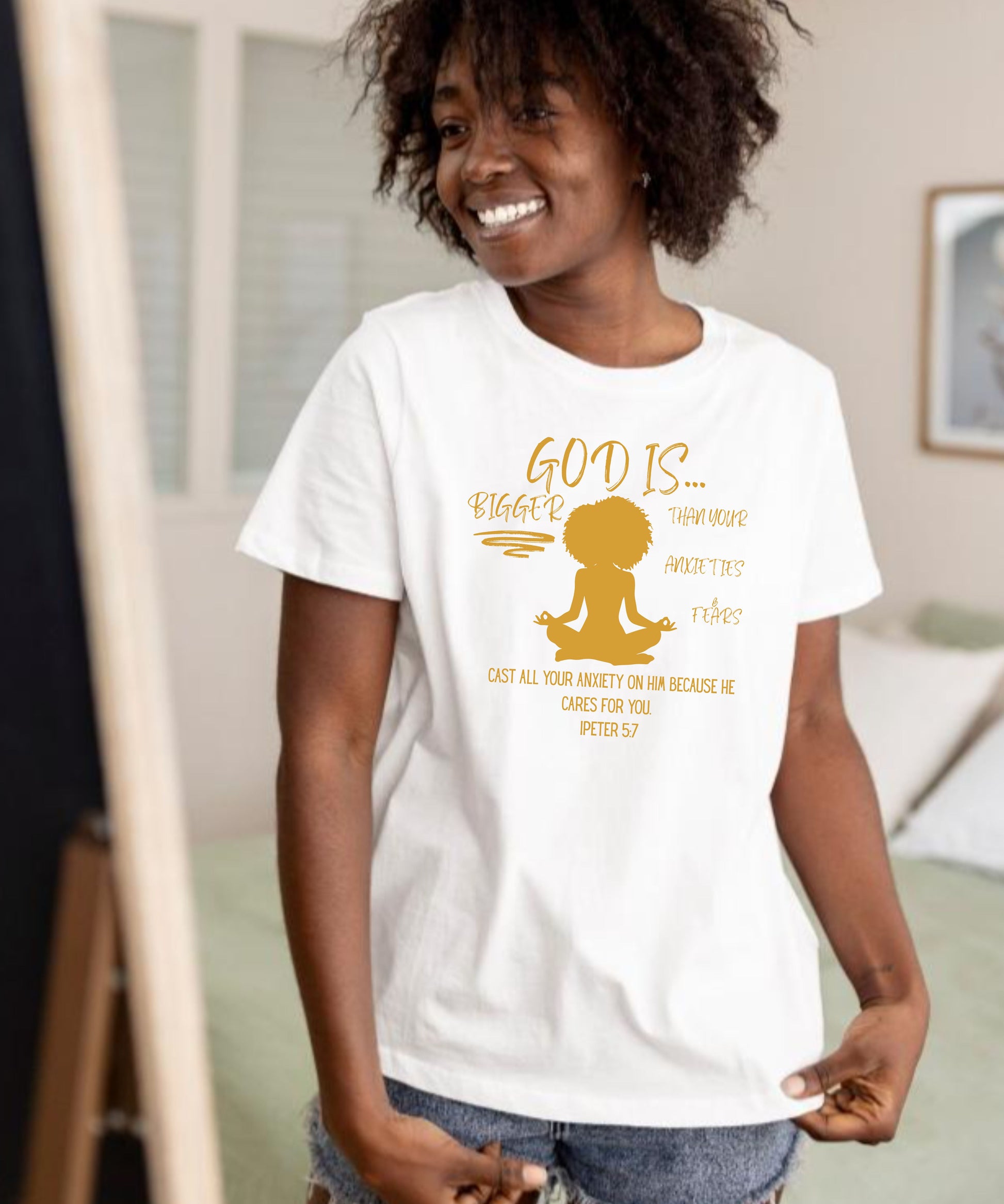 Stand strong in faith with our God Is Bigger Tee—a powerful reminder that no problem, fear, or mountain is greater than Him. Designed with simplicity and impact in mind, this shirt speaks hope and courage wherever you go. Crafted from soft, premium cotton, it’s perfect for everyday wear, church, or casual outings. More than apparel, it’s a declaration that God is bigger than anything we face.