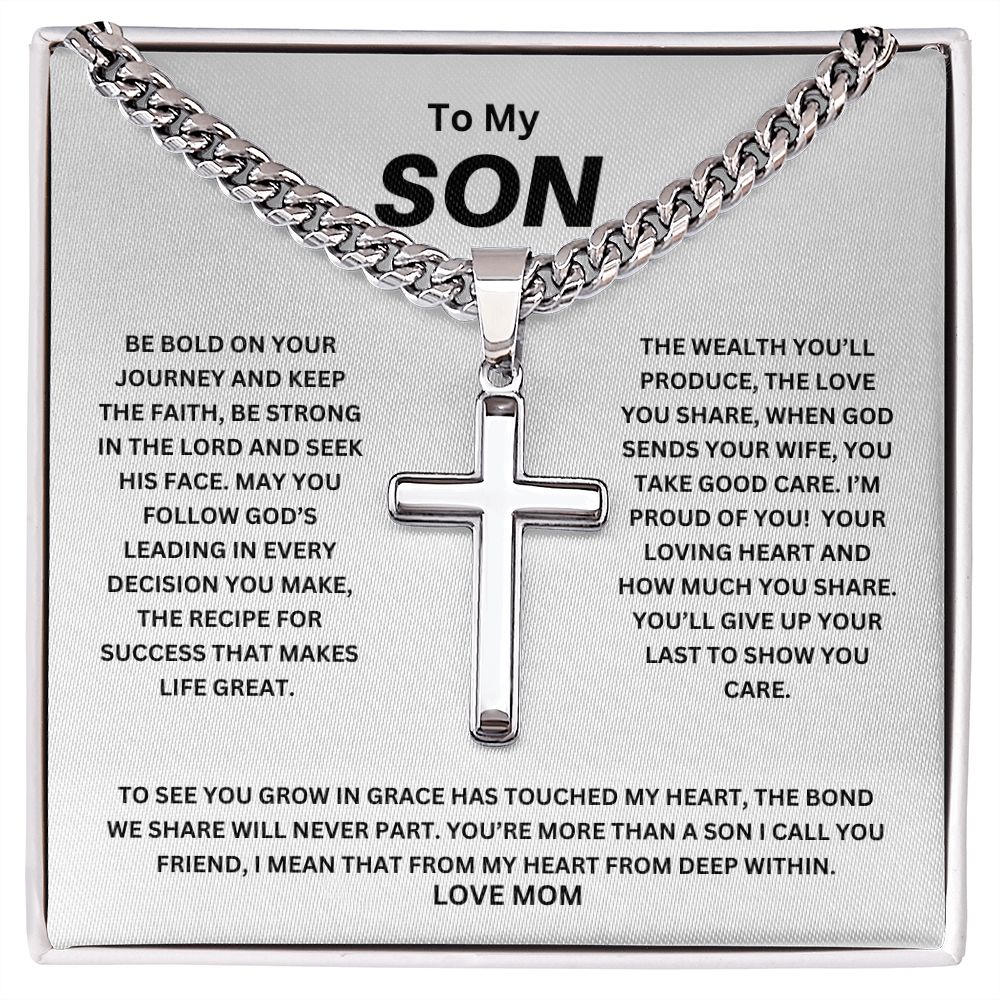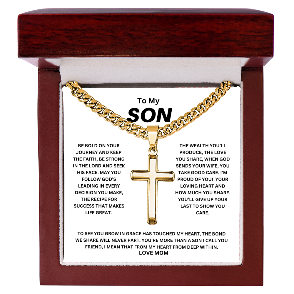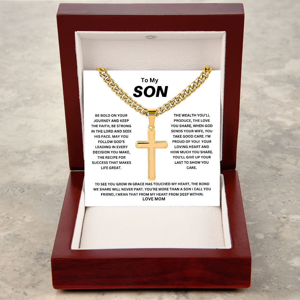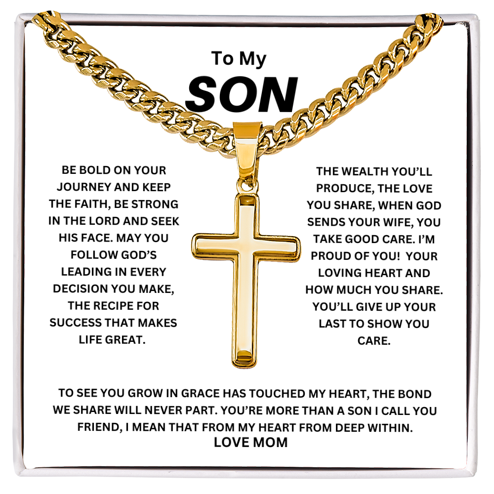 To My Son Be Bold Artisan Cross with Cuban Link Chain